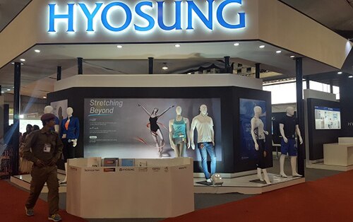 From yarns of spandex, nylon and polyester to automotive/commercial carpets, carbon fiber and aramid, Hyosung introduced varieties of clothing and industrial textiles to the Indian market in the largest exhibition booth of the event.