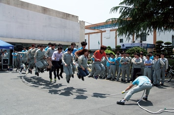 창원공장에서 실시한 중식 시간 이벤트 단체 줄넘기가 5월 8일부터 시작됐다. 22명이 한 팀이 되어 단체 줄넘기를 하는 경기로 올해는 46개 팀이 참가 신청을 했으며 토너먼트로 경기를 벌여 5월 20일 최종 우승팀을 가릴 예정이다. 작년에는 특수기설계팀이 44개라는 기록으로 최종 우승을 한 바 있다. 창원공장은 팀워크와 소통 활성화를 통해 활기찬 직장문화를 조성하기 위해 2012년 3월부터 ‘중식 시간 이벤트’를 개최하고 있다. 이벤트에 참가한 사원들은 “팀원들이 업무를 떠나 소중한 추억을 만들 수 있는 기회다”, “같은 목표를 향해 달려가니 마음이 하나로 모인다, 이런 마음으로 업무도 잘 수행할 수 있을 것 같다”는 등 긍정적인 반응을 보였다. 창원공장 ‘중식 시간 이벤트’는 임직원들에게 재미와 웃음을 주는 활력소이자 팀워크를 다지는 화합의 장이 되고 있다.